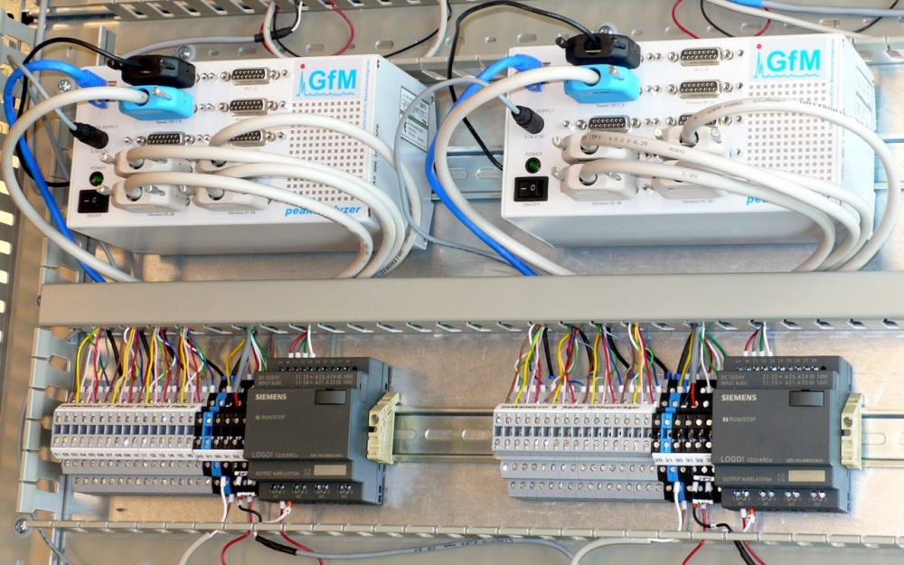 Die Installation der Beschleunigungssensoren und die gesamte Kabelverlegung wird durch HKM realisiert. Durch GfM erfolgt lediglich der Einbau der vormontierten Peakanalyzer in zugewiesene Schaltschränke sowie die Inbetriebnahme.